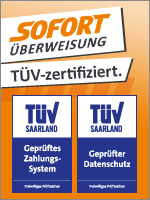 Integrierte Zahlungsweisen wie z.B. PayPal, sofortüberweisung.de, Rechnung, Vorkasse, Barzahlung bei Abholung, Bankeinzug, Kreditkarte